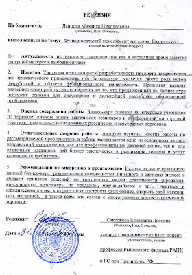 Рецензия на бизнес-курс «Функциональный менеджмент магазина» кандидата экономических наук, доцента, профессора РАНХ и ГС при Президенте РФ.